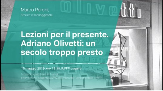 Lezioni per il presente. Adriano Olivetti: un secolo troppo presto – Marco Peroni Articolo pubblicato:20 Maggio 2018 Sei qui: Home > In evidenza Lezioni per il presente. Adriano Olivetti: un secolo troppo presto. Conferenza dello storico Marco Peroni (15 maggio 2019 – IUFFP – Lugano)